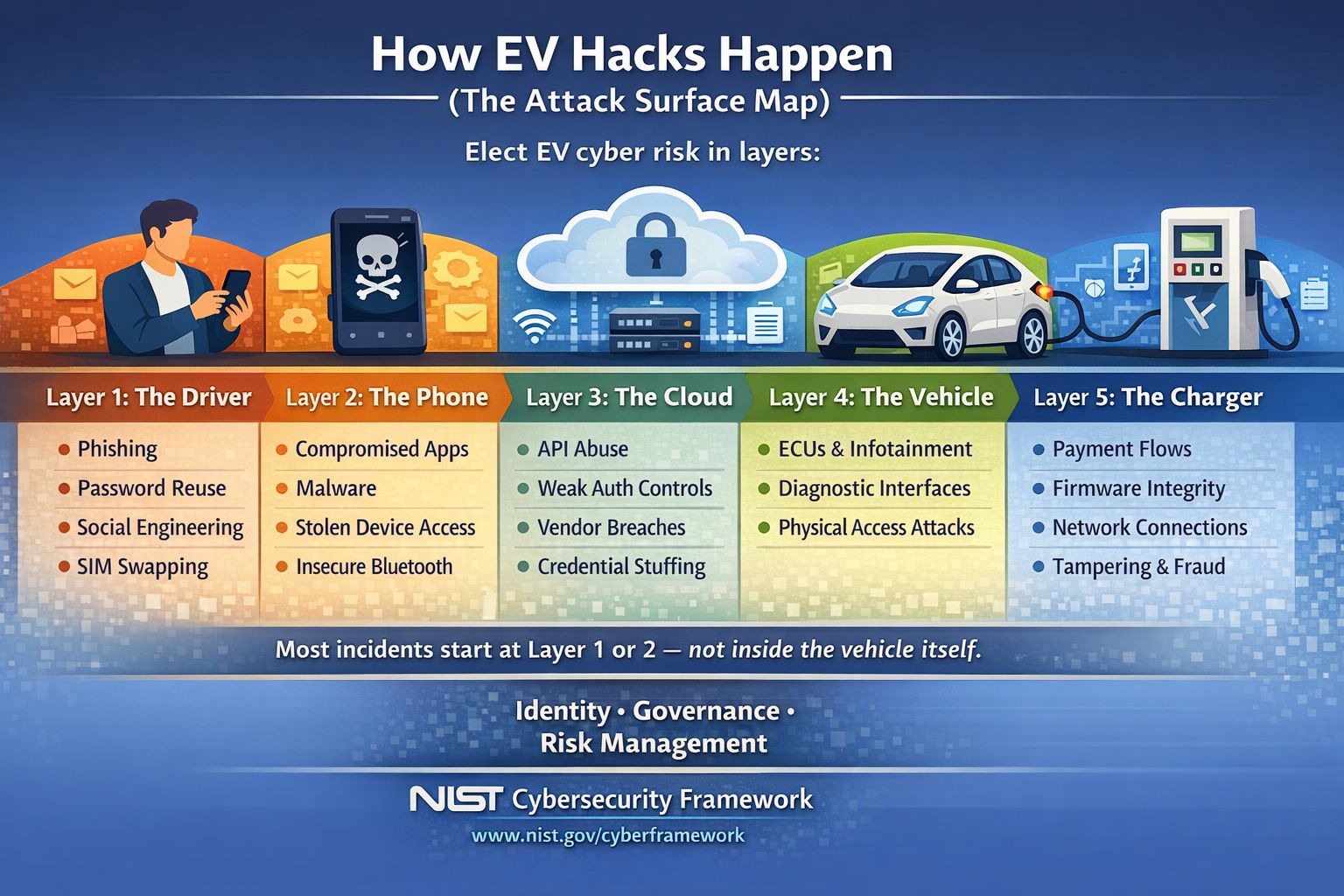 Thatβs why many EV security discussions keep circling back to identity, governance, and risk management β the same core concepts baked into the NIST Cybersecurity Framework.